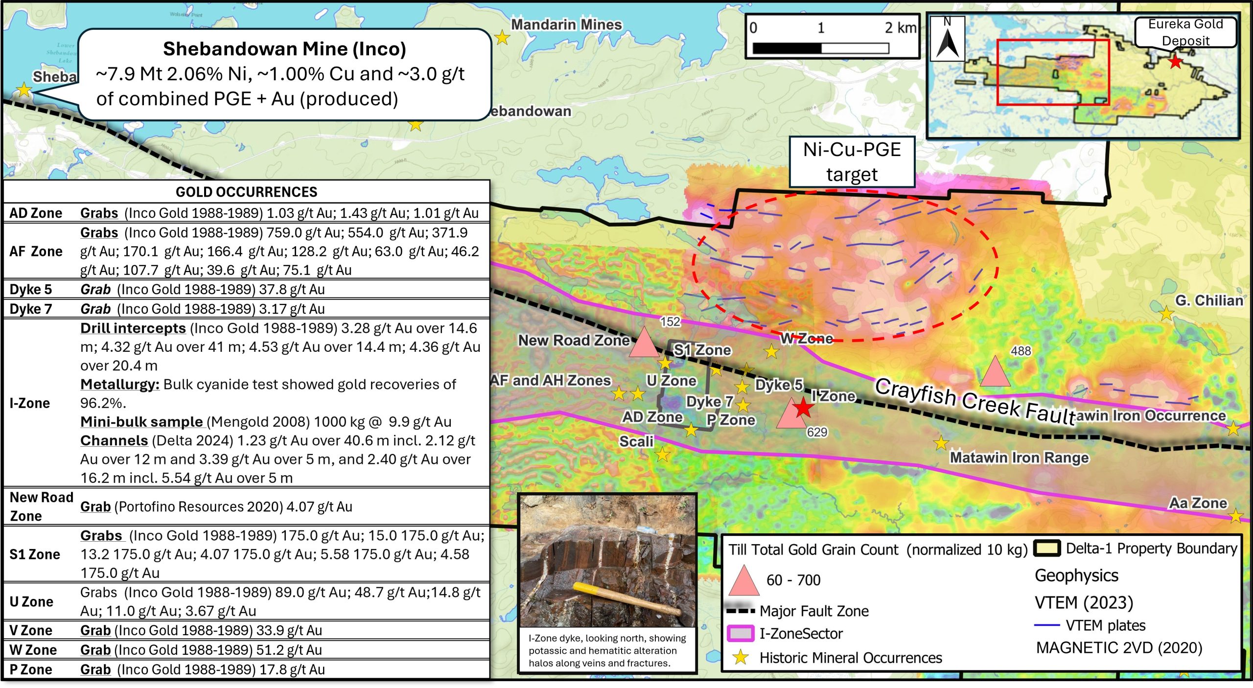 An extensive exploration program aimed at demonstrating the potential of the entire I-Zone / Crayfish Creek Fault sector, which runs east-west through the centre of the property, where Delta has recently identified significant till anomalies, is planned to begin as soon as weather permits. The goal of the program is to expand and further characterize the mineralized zones ahead of future near-term drilling. The program will include systematic trenching, mapping, and sampling of several known occurrences where high-grade gold has already been identified, along with systematic prospecting across the broader area and along strike.